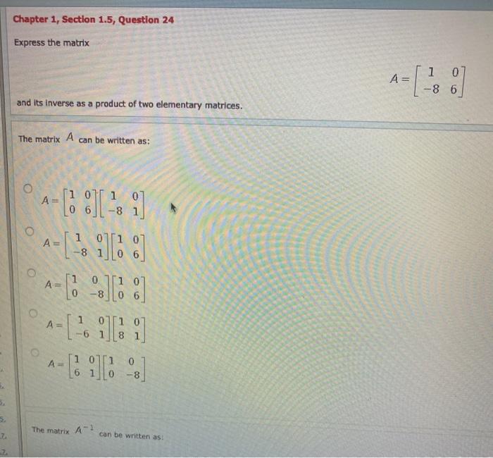 Express The Matrix And Its Inverse As Products Of Chegg Com