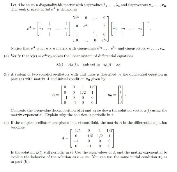 Let A Be An Nxn Diagonalizable Matrix With Chegg Com