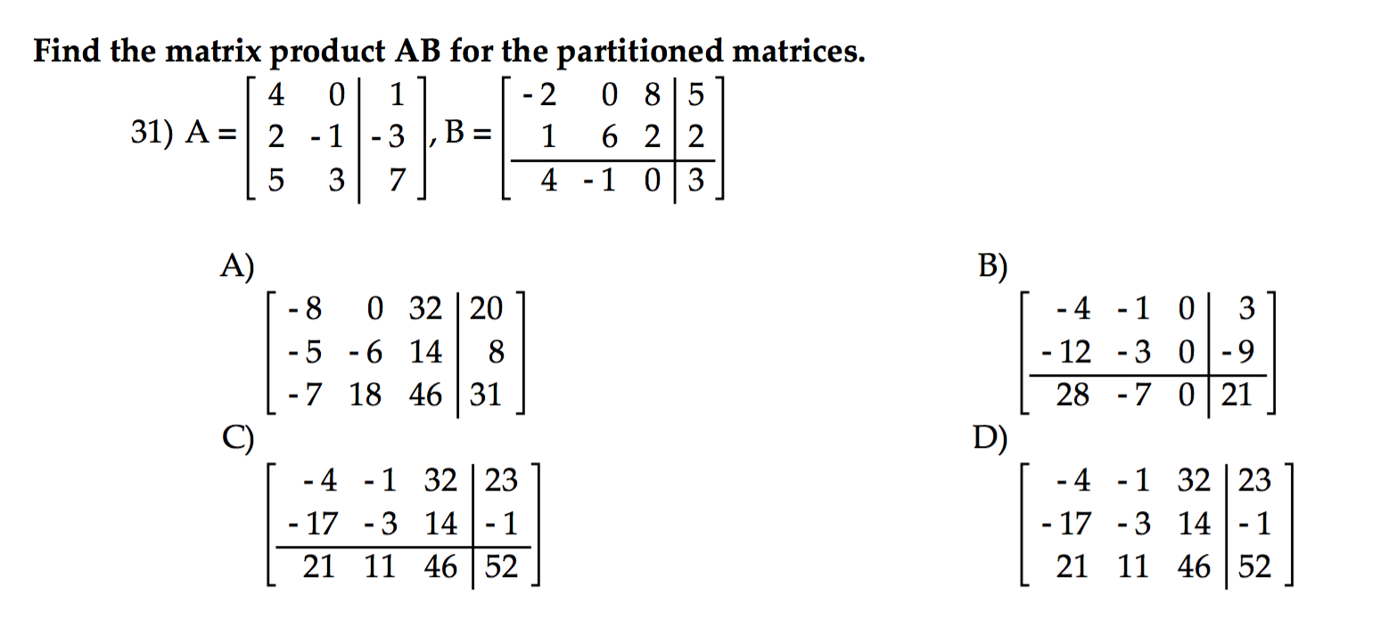 Find The Matrix Product Ab For The Partitioned Chegg Com